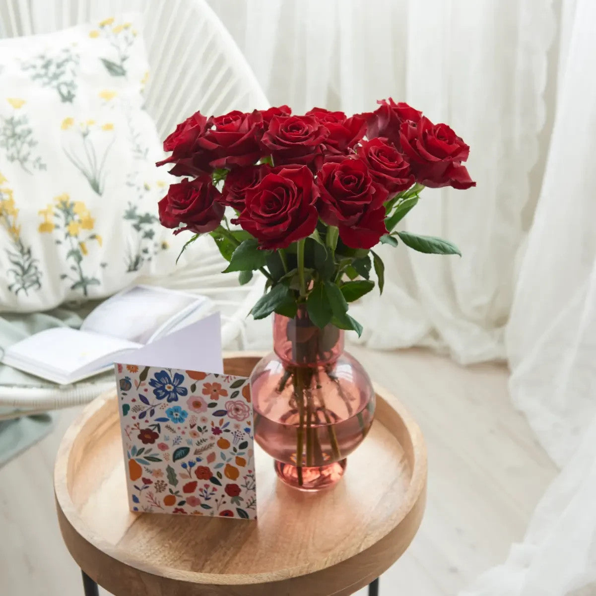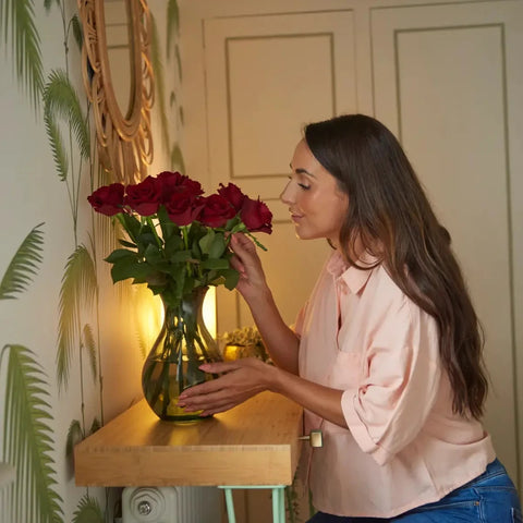 Keep flowers in a cool environment away from direct heat sources and strong sunlight. Care instructions are included to support correct conditioning during the first 24–48 hours.